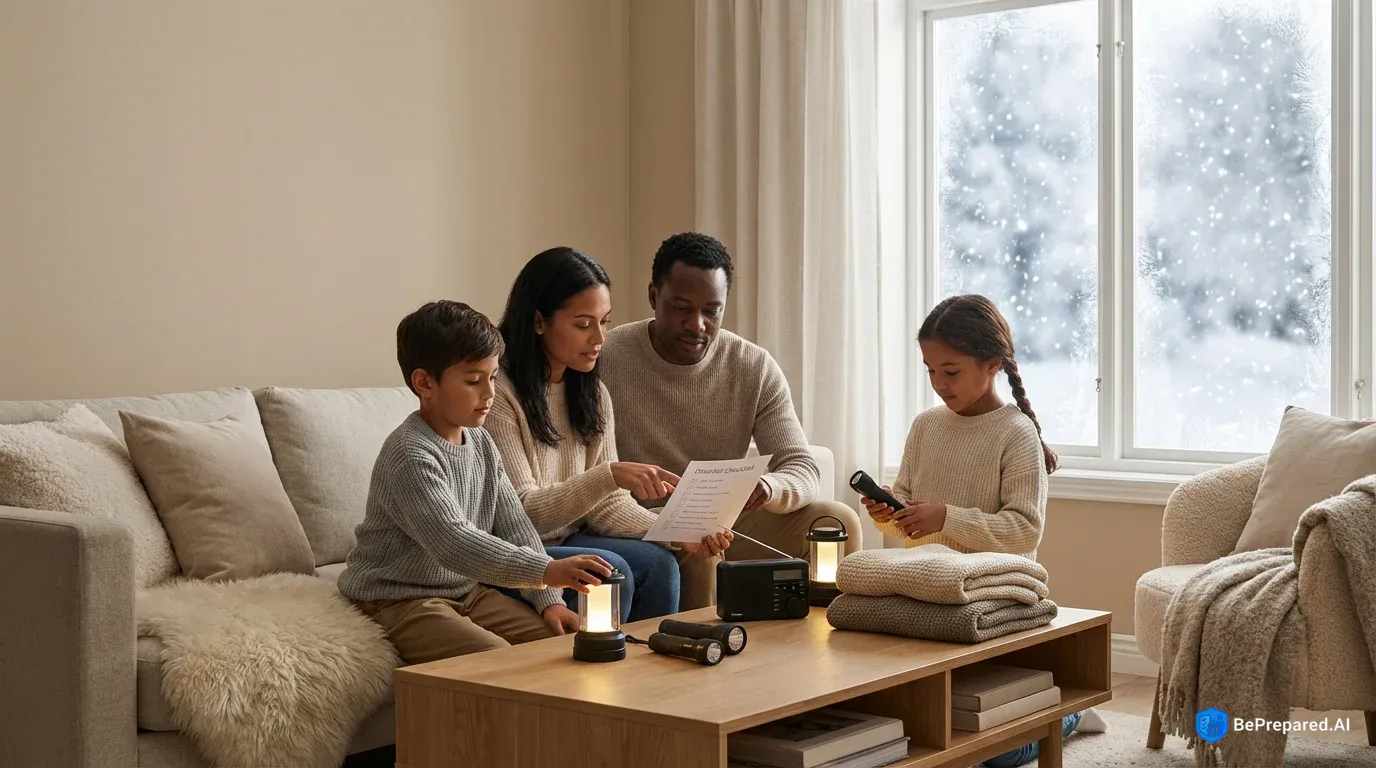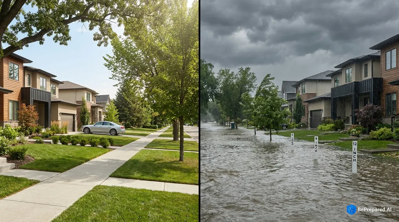 Natural disasters including hurricanes, wildfires, tornadoes, earthquakes, floods, and winter storms. Select sub-scenarios for targeted preparation advice.